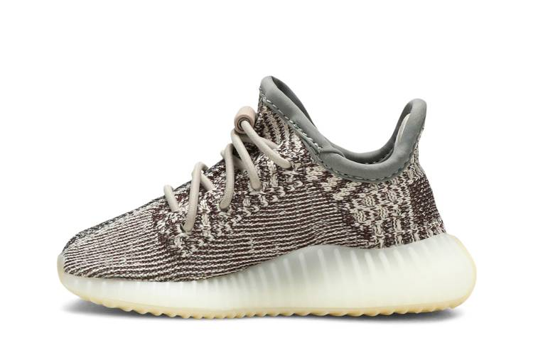 The adidas Yeezy Boost 350 V2 Zyon (Infants) features a Primeknit upper with a unique grey and brown woven pattern. The shoe includes a black monofilament side stripe and a semi-translucent rubber midsole with Boost cushioning for comfort and support. The color scheme of the shoe is a blend of earthy tones, making it versatile and stylish. Released in July 2020, this infant-sized version of the popular Yeezy Boost 350 V2 is designed to provide little ones with the same style and comfort as the adult version.