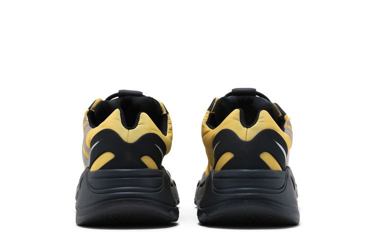 The adidas Yeezy Boost 700 MNVN Honey Flux has a bright yellow neoprene upper with reflective "700" quarter detailing and black reinforced trimming. A black sculptural Boost sole provides cushioning, continuing the brand's signature comfort since 2015.