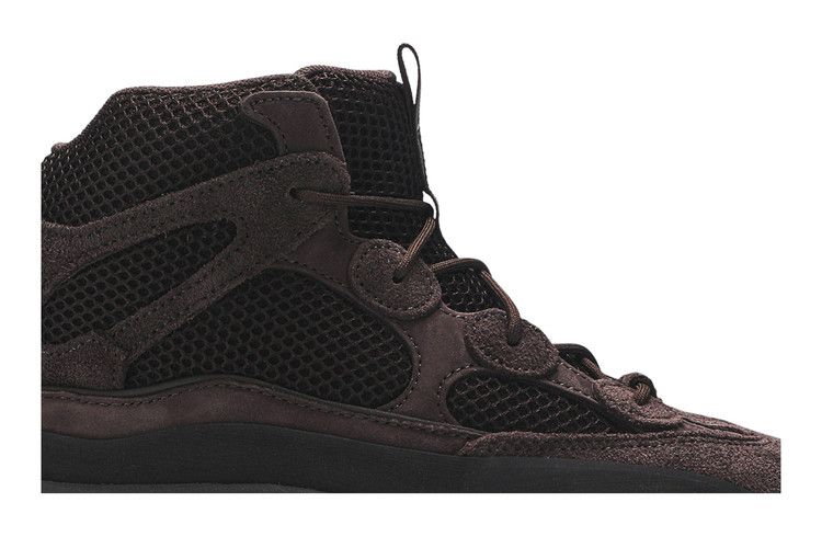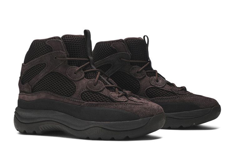The adidas Yeezy Desert Boot Oil (Kids) features a military-inspired high-top design with a leather, suede, and mesh upper. Its dark earthy colorway provides a rugged monochromatic look. The padded collar and lacing system ensure ankle support and comfort.