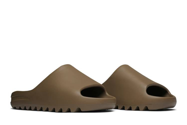 The adidas Yeezy Slide Earth Brown features a slip-on design with a monochromatic finish. Made from EVA foam, it offers a molded footbed for immediate comfort. The outsole has exaggerated flex grooves for improved traction. This model is part of a collection that includes 'Bone,' 'Resin,' and 'Desert Sand' colorways, with the latter being exclusive to the Yeezy Supply site. No conversion is needed between US and UK sizing.
