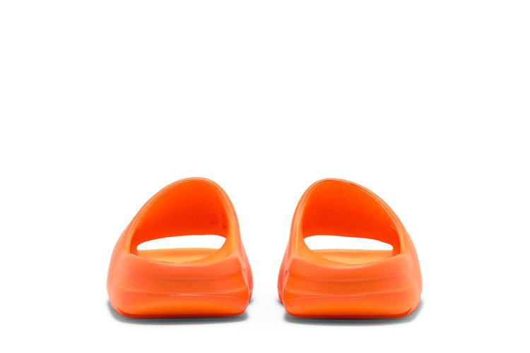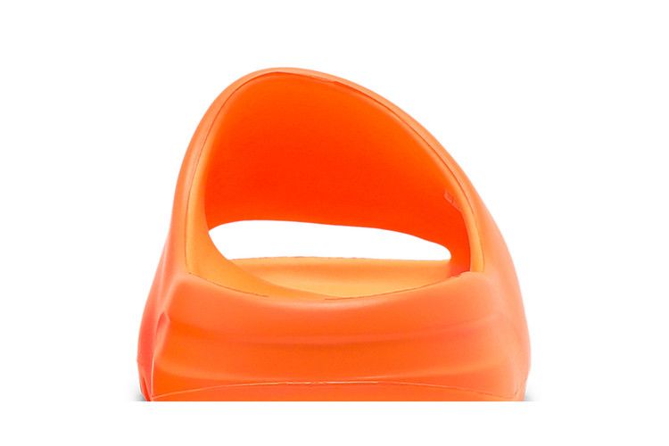 The adidas Yeezy Slide ‘Enflame Orange’ showcases a vibrant citric tone on an EVA slip-on structure. Its design includes an open-toe style, breathable construction, and a cozy footbed marked with the adidas three-stripe logo. Notable flex grooves enhance the outsole for improved cushioning and traction. The soft footbed offers immediate comfort, complemented by the outsole's traction-enhancing grooves.