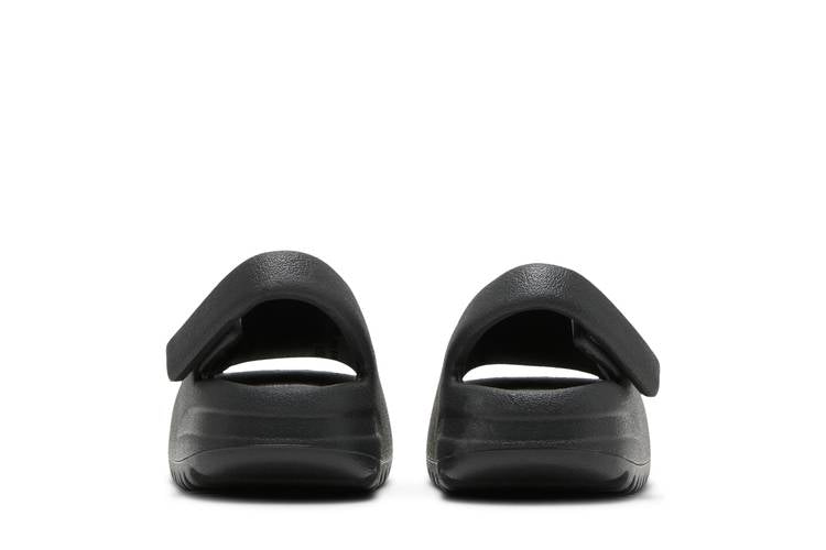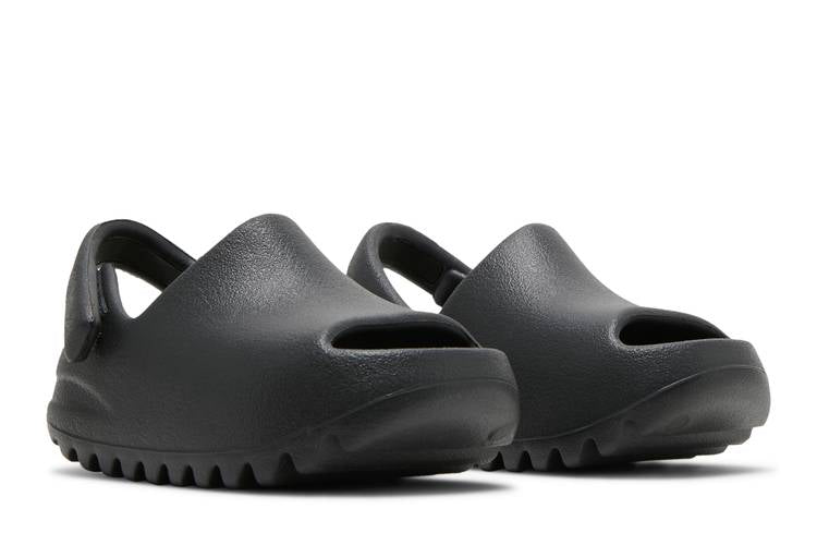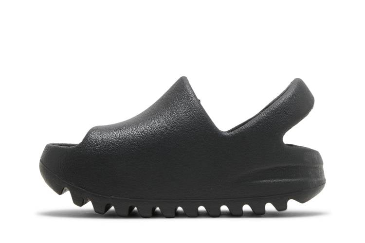 The adidas Yeezy Slide Onyx (Infants) features a sleek black design with a one-piece EVA foam construction for comfort and grip. An adjustable strap ensures a secure fit, while deep grooves on the outsole offer flexibility, traction, and shock absorption. The minimalist slip-on silhouette is finished with debossed three-stripe branding on the footbed for a touch of adidas style. Introduced in May 2022, these slides offer young wearers a stylish and functional footwear option.