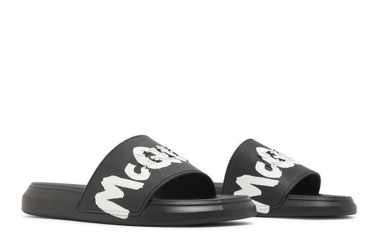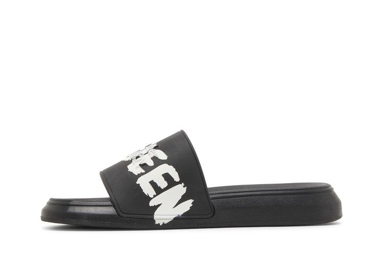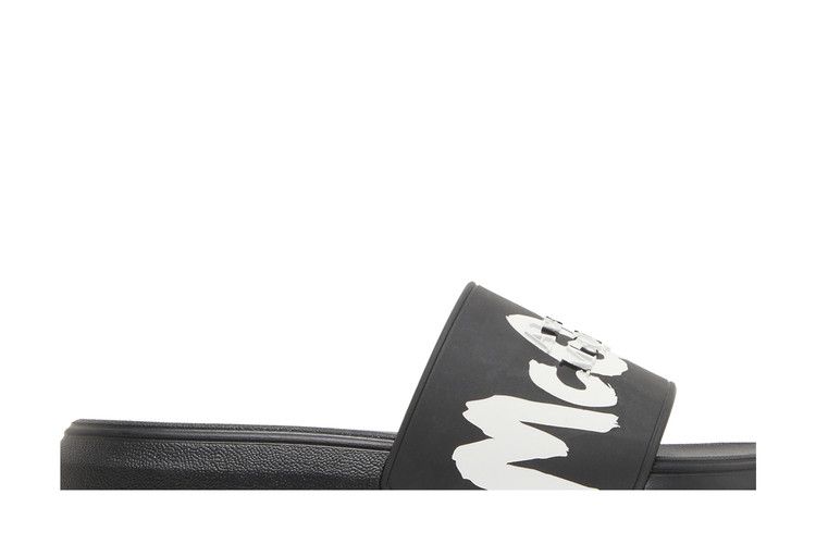 The Alexander McQueen Grafitti Logo Slide Black White is now available at Side Kicks!