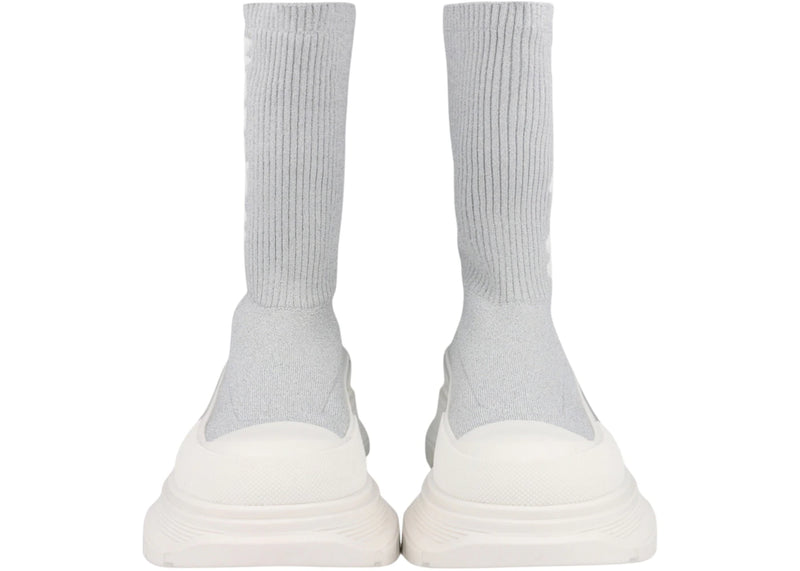 Alexander McQueen Logo Intarsia Chunky Sock Sneaker Grey White (Women's)