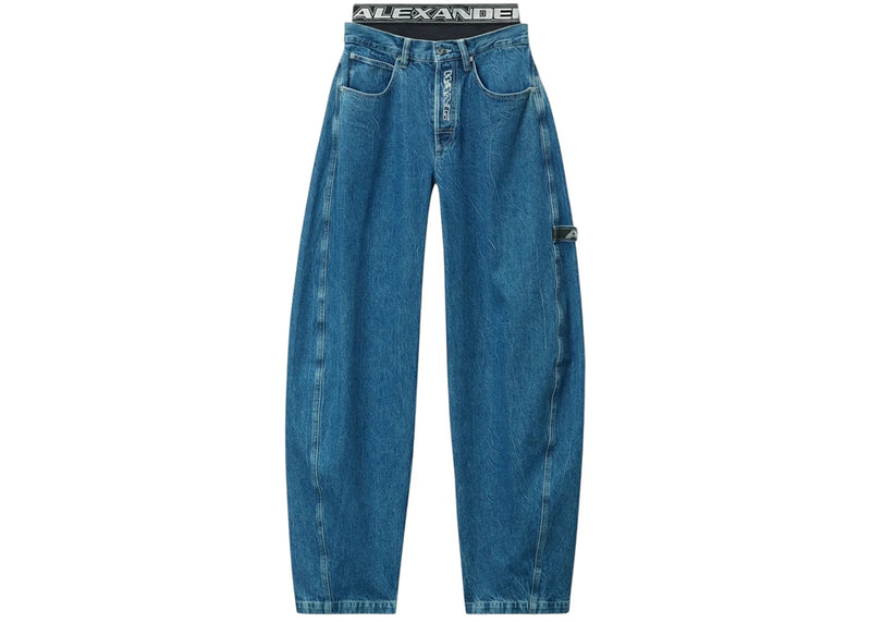The Alexander Wang Logo Elastic Prestyled Rounded Jeans Brown Green is now available at Side Kicks!