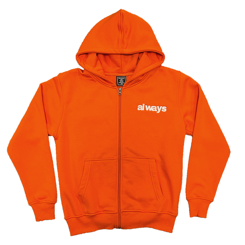 The Always Zip Up Orange Zip Up Hoodie is now available at Side Kicks!