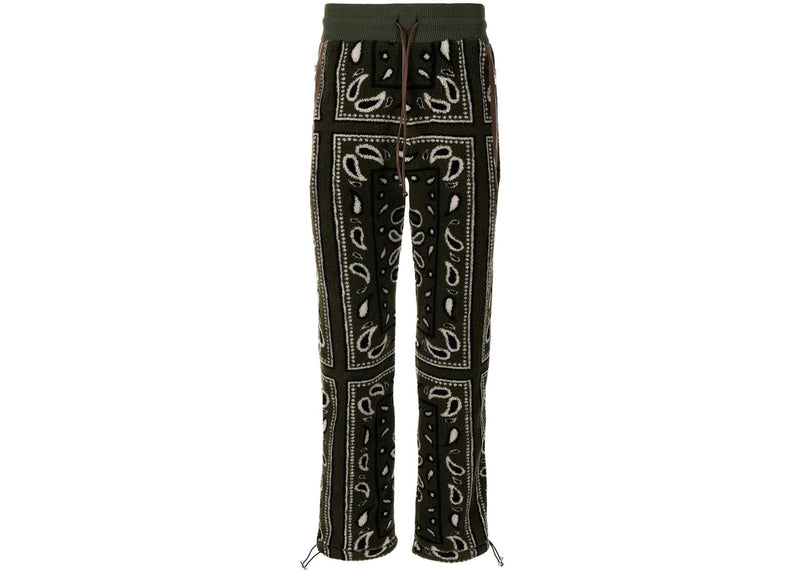 The AMIRI Bandana Print Fleece Sweatpants Military Green is now available at Side Kicks!