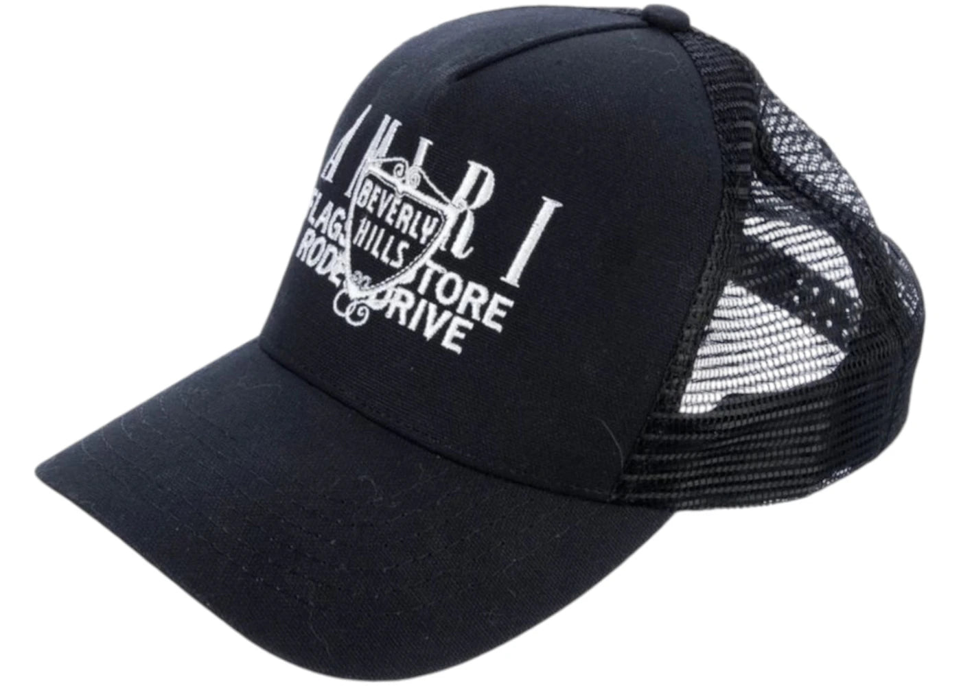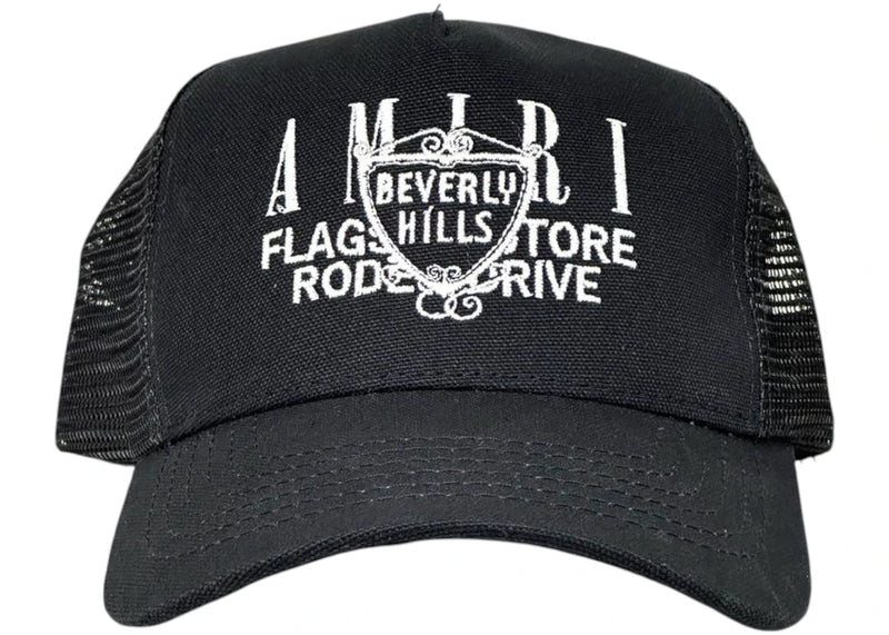 The AMIRI Beverly Hills Trucker Hat Black is now available at Side Kicks!