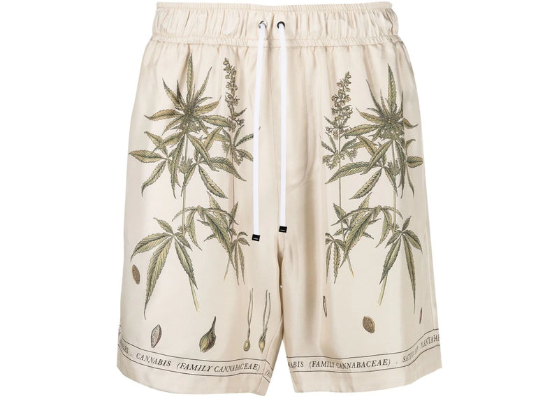 The AMIRI Botanical Leaves Drawstring Silk Shorts Cream is now available at Side Kicks!