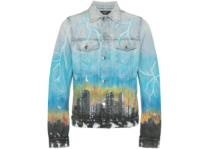 The AMIRI City Dragon Trucker Denim Jacket Blue is now available at Side Kicks!