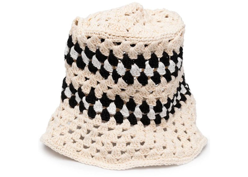 The AMIRI Crochet Bucket Hat Beige/Black/White is now available at Side Kicks!