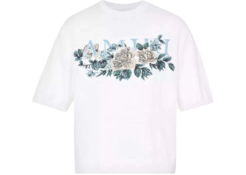 The AMIRI Floral Logo Knitted Crewneck Tee White is now available at Side Kicks!