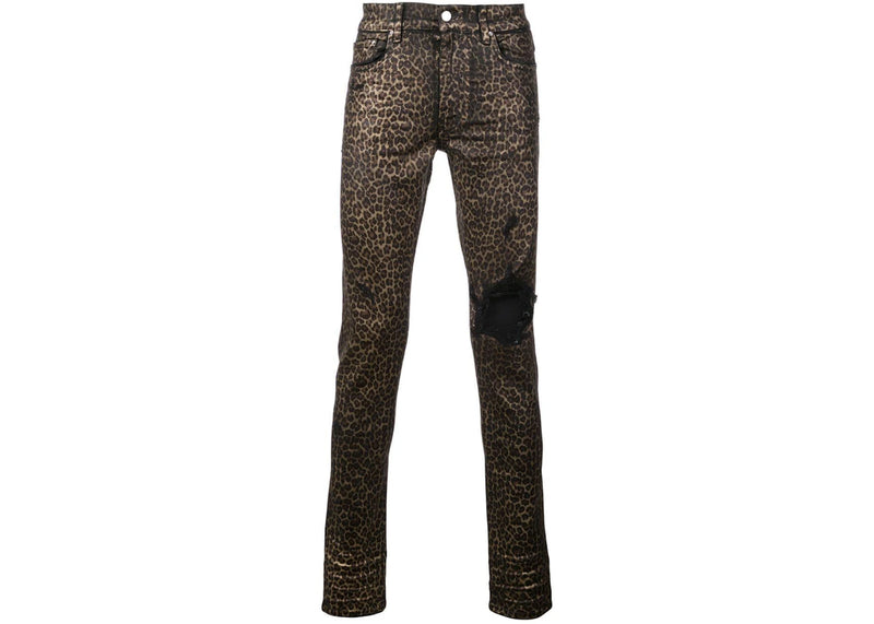 The AMIRI Foil Broken Leopard Jean Brown is now available at Side Kicks!