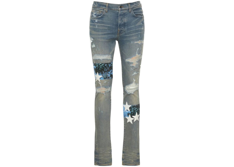 The AMIRI Hawaiian Star Art Patch Jeans Clay Indigo is now available at Side Kicks!
