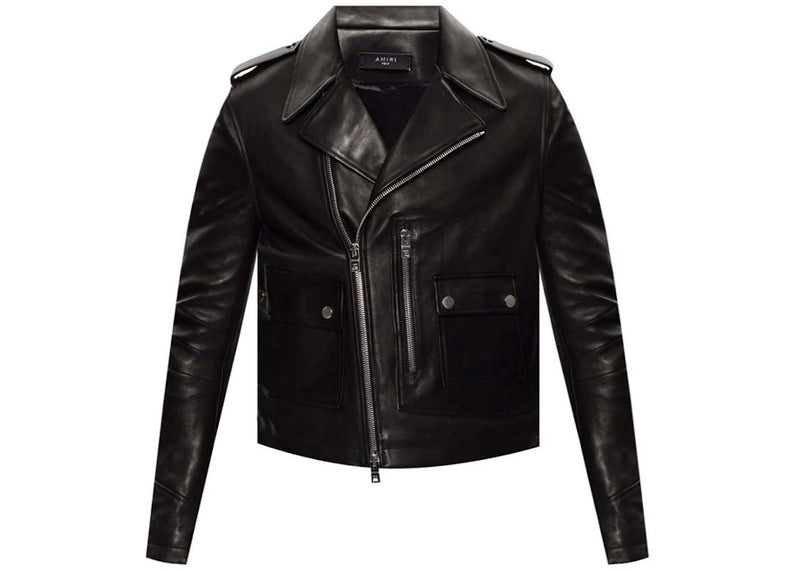 The AMIRI Leather Biker Jacket Black is now available at Side Kicks!