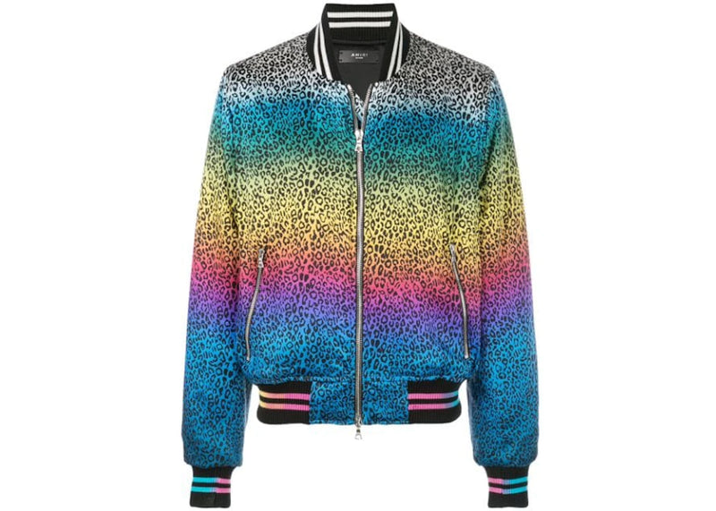 The AMIRI Leopard Rainbow Bomber Jacket Multicolor is now available at Side Kicks!