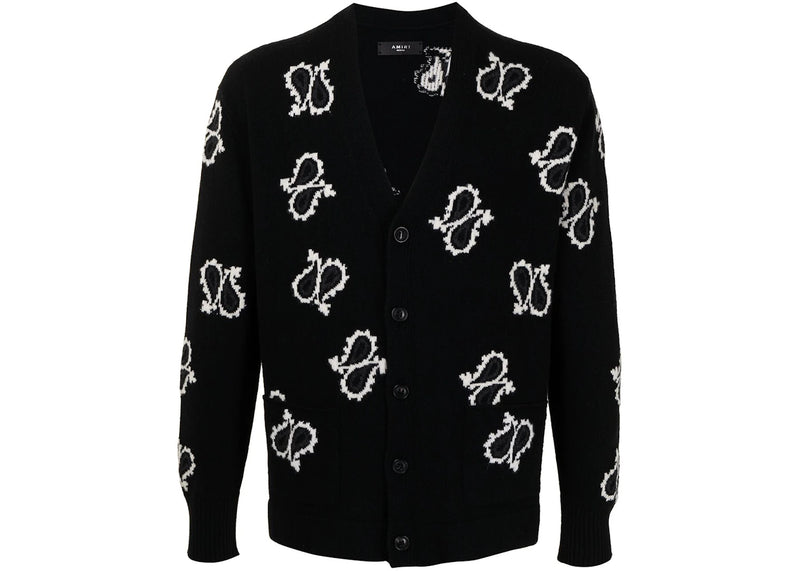 The AMIRI Paisley Cashmere Cardigan Sweater Black is now available at Side Kicks!