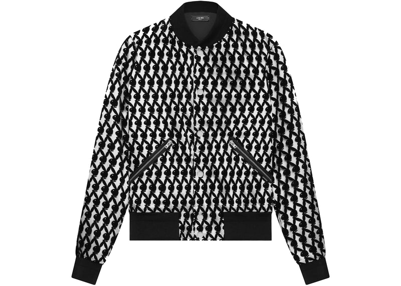 The AMIRI Playboy Flocked Bomber Jacket Black is now available at Side Kicks!