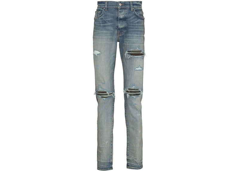 The AMIRI Ripped Distressed Skinny Jeans Clay Indigo is now available at Side Kicks!