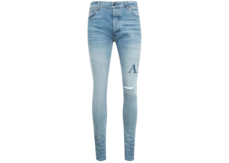 The AMIRI Starburst Applique Skinny Jean Perfect Indigo is now available at Side Kicks!