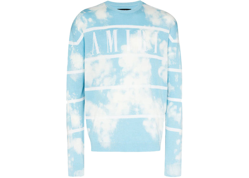 The AMIRI Striped Cloud Knit Crew Sweater Light Blue is now available at Side Kicks!