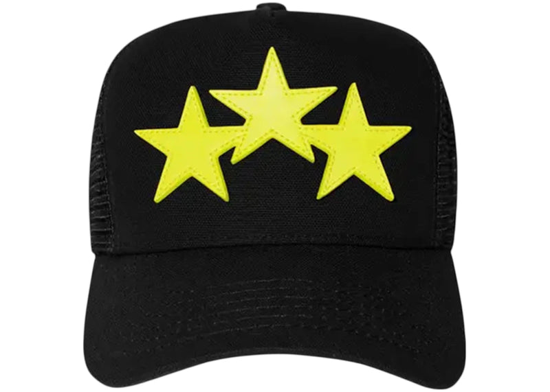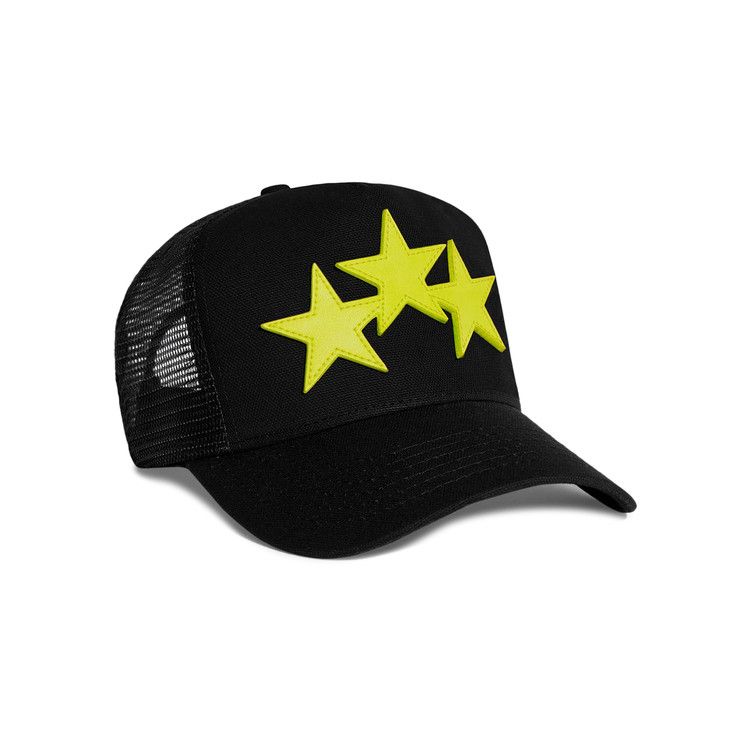 The AMIRI Three Star Trucker Hat Black/Lime is now available at Side Kicks!
