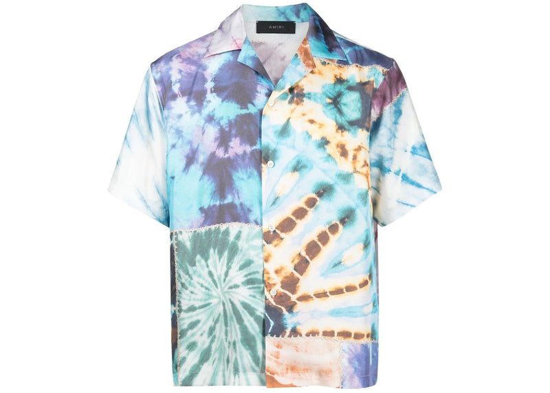 The AMIRI Tie Dye Patchwork Silk Shirt Multicolor is now available at Side Kicks!