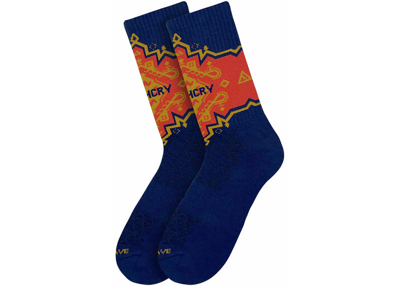The APTHCRY Turkish Rug Socks Navy is now available at Side Kicks!
