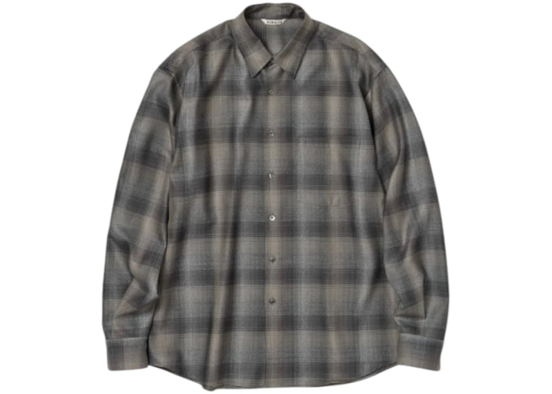 The Auralee Super Light Wool Check Shirt Charcoal/Grey/Check is now available at Side Kicks!