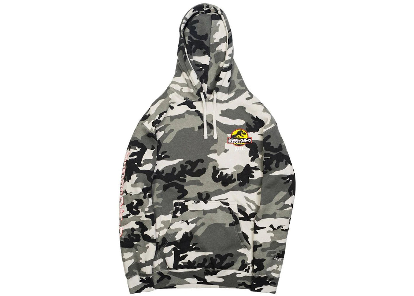 The BAIT x Jurassic Park Damage Control Hoodie Camo is now available at Side Kicks!