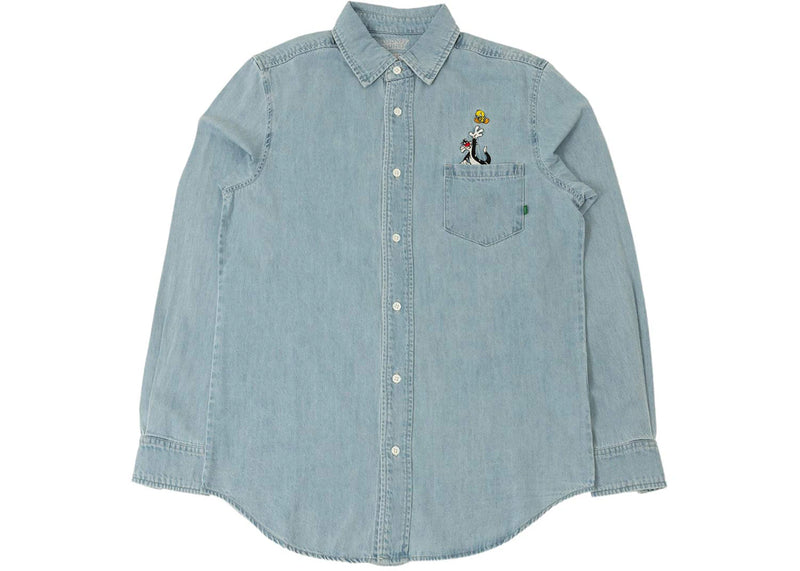 The BAIT x Looney Tunes Denim Embroidery Shirt Blue is now available at Side Kicks!
