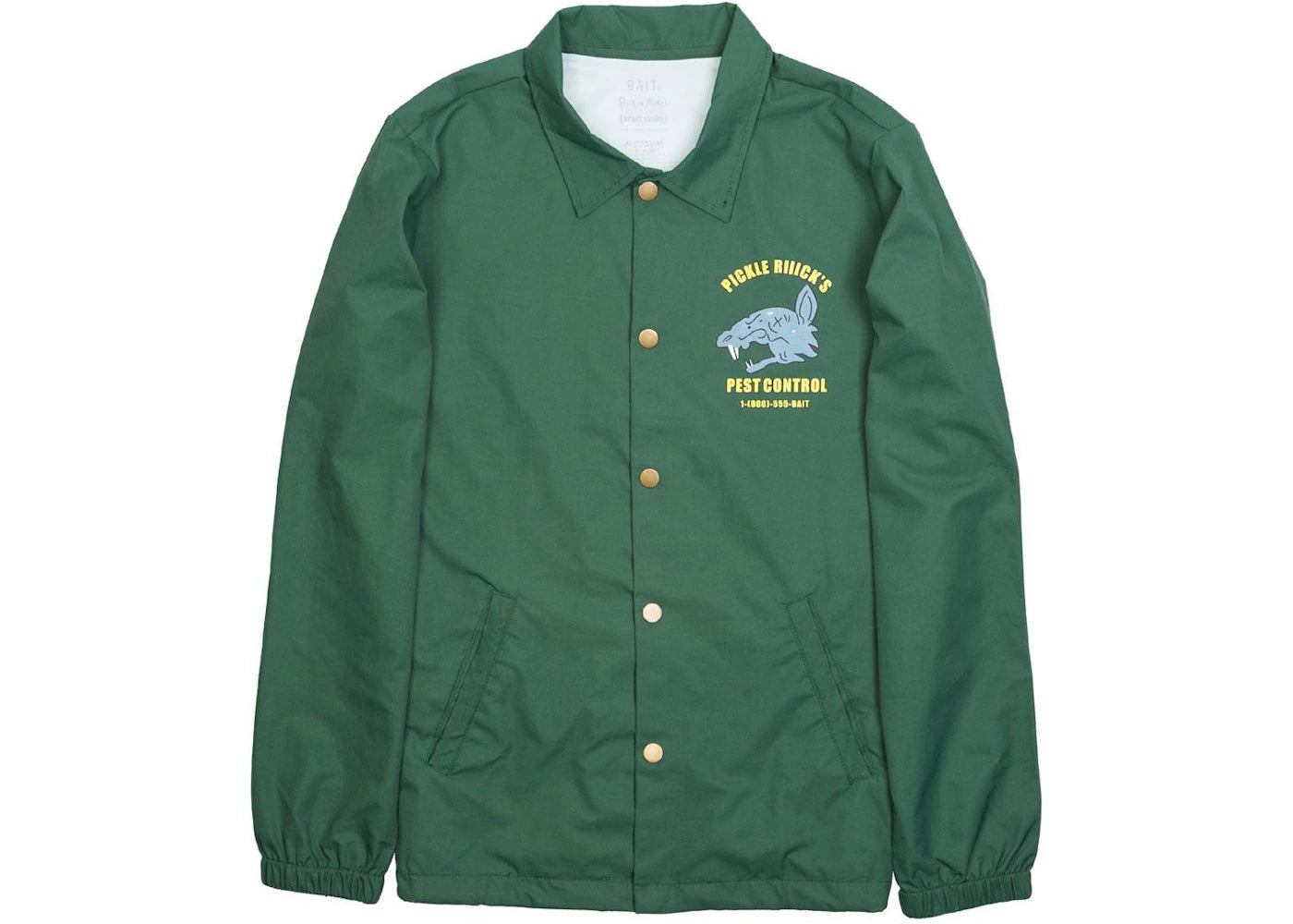The BAIT x Rick And Morty Pickle Rick Coaches Jacket Green/Forest is now available at Side Kicks!