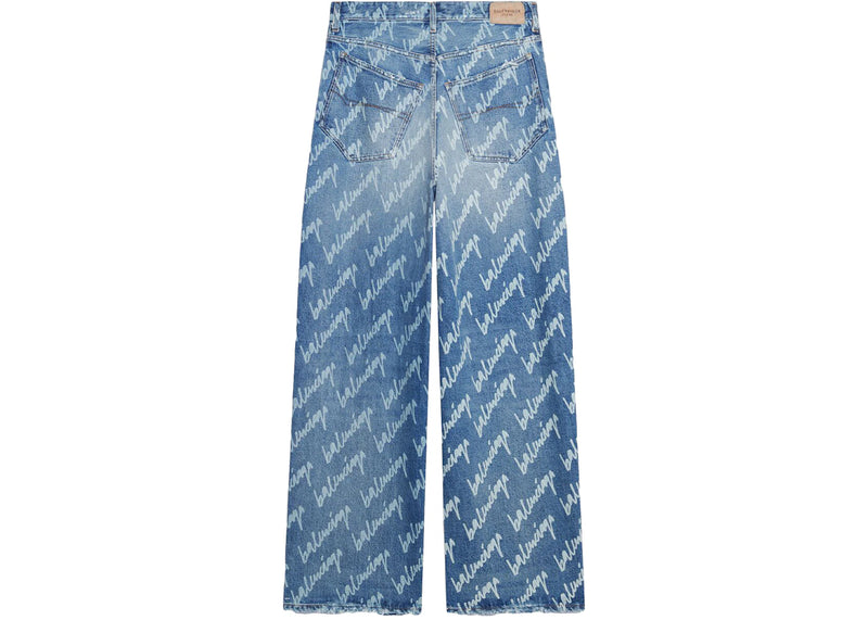 The Balenciaga All Over Logo Large Fit Denim Trousers Indigo/White is now available at Side Kicks!