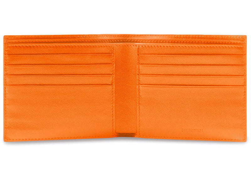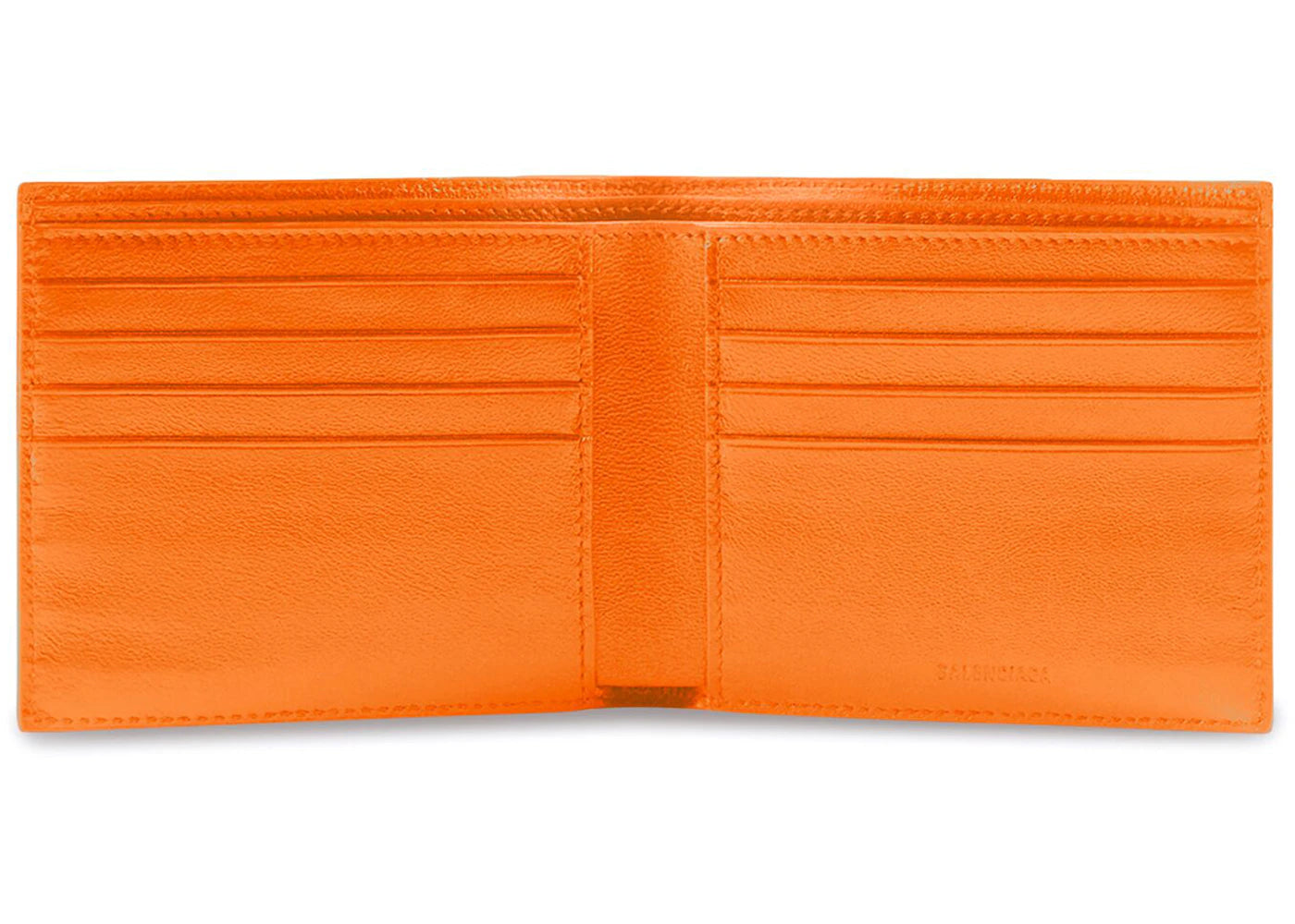 The Balenciaga Cash Square (8 Card Slot 2 Bill Compartments) Folded Wallet Orange/Black is now available at Side Kicks!