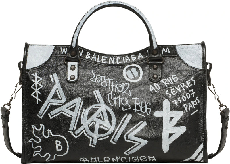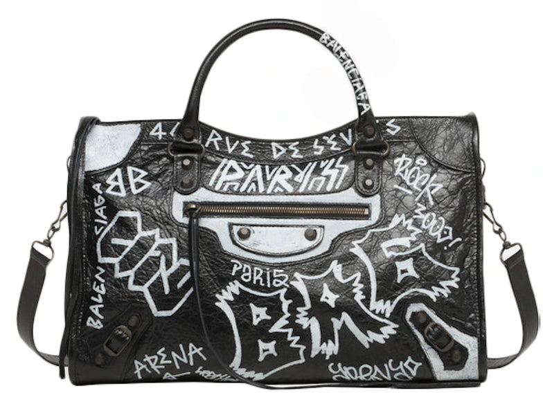 The Balenciaga Classic City Graffiti Medium Black/White is now available at Side Kicks!