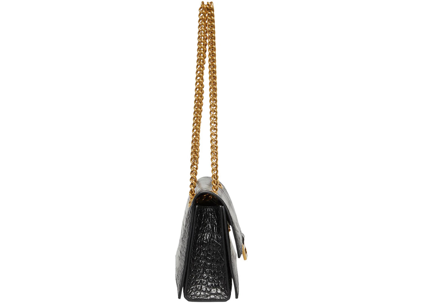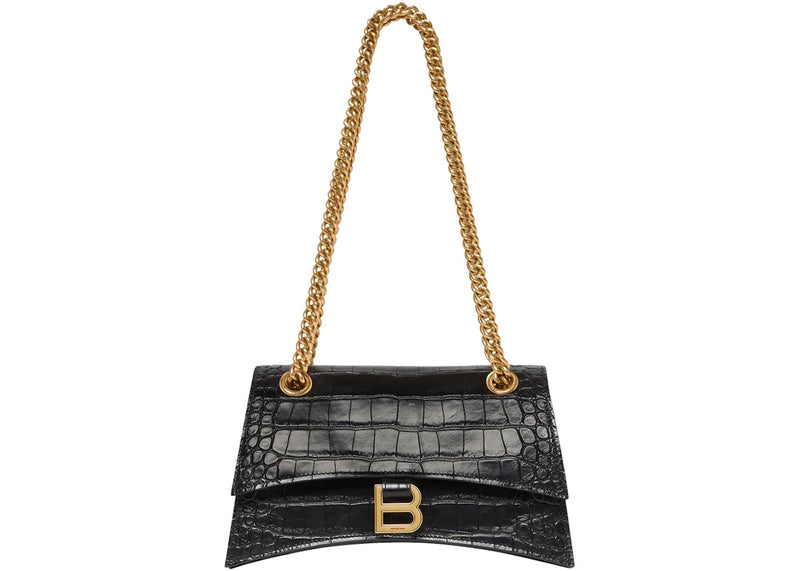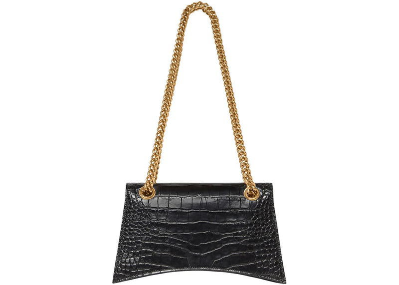 Balenciaga Crush Chain Shoulder Bag Small Crocodile Embossed Black