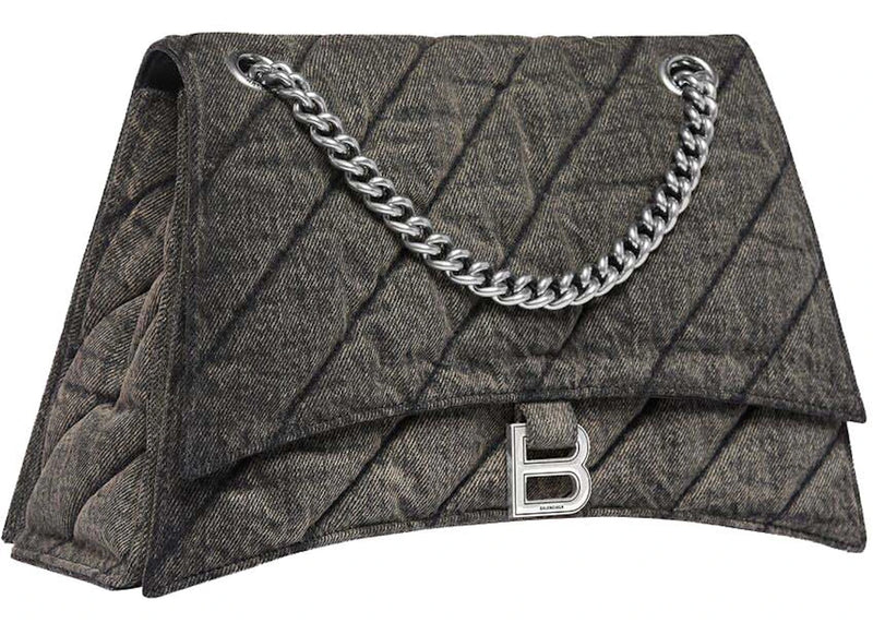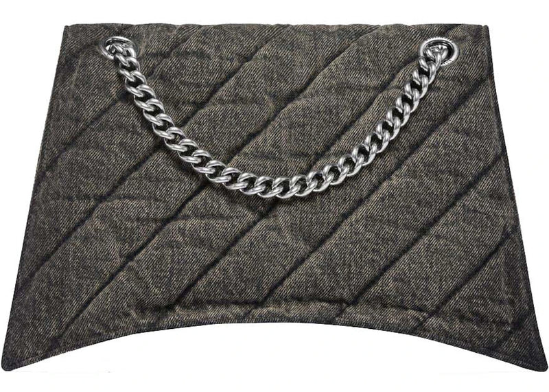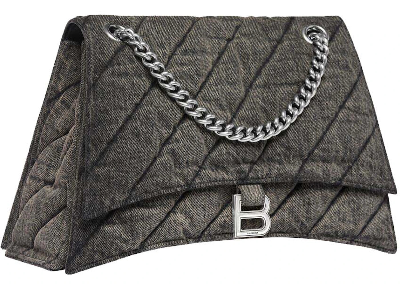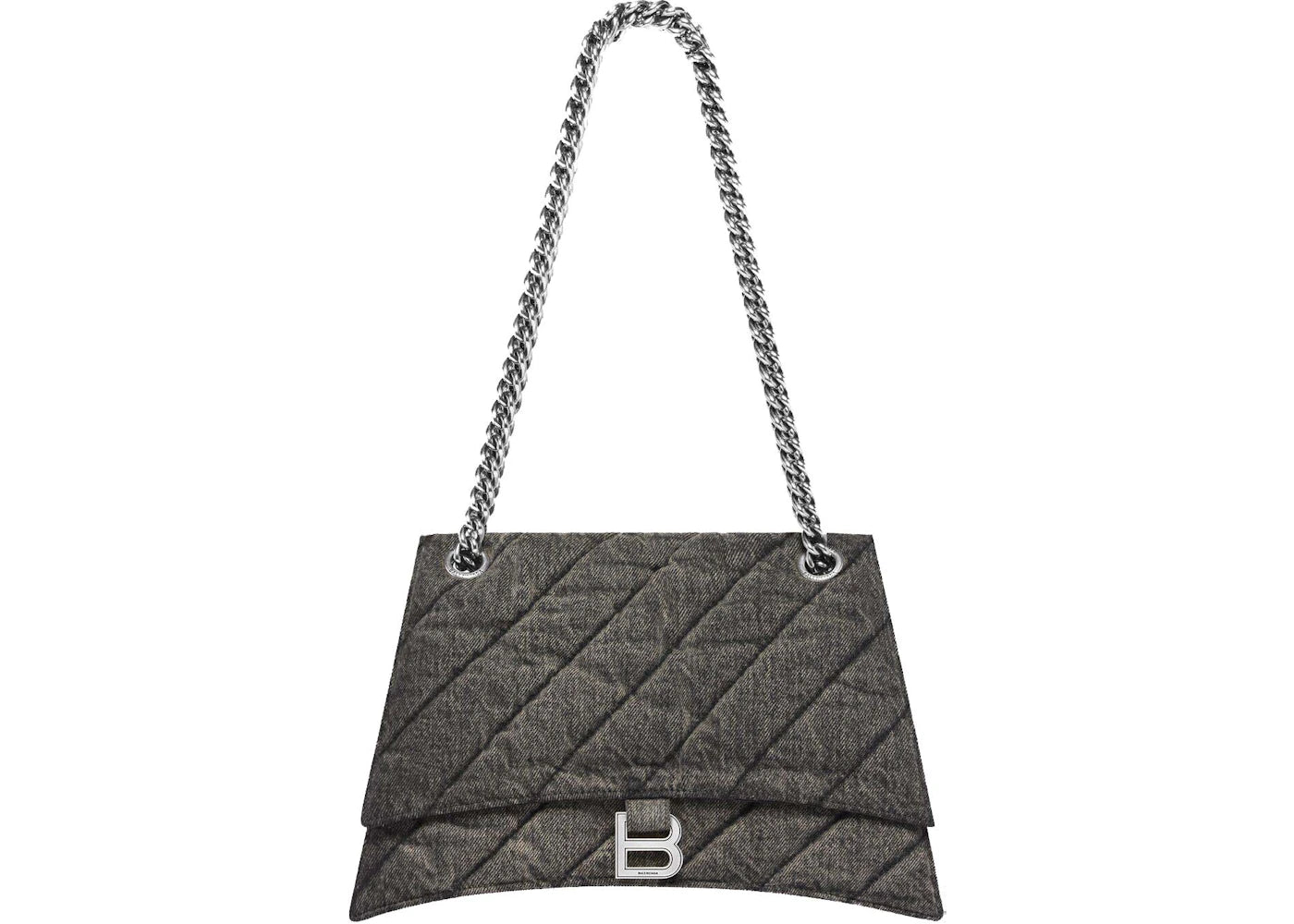 The Balenciaga Crush Medium Chain Bag in Quilted Denim Black is now available at Side Kicks!