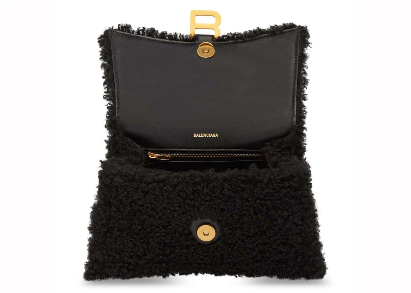 The Balenciaga Hourglass Furry Shopper Small Black is now available at Side Kicks!