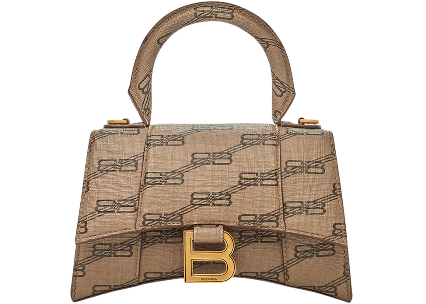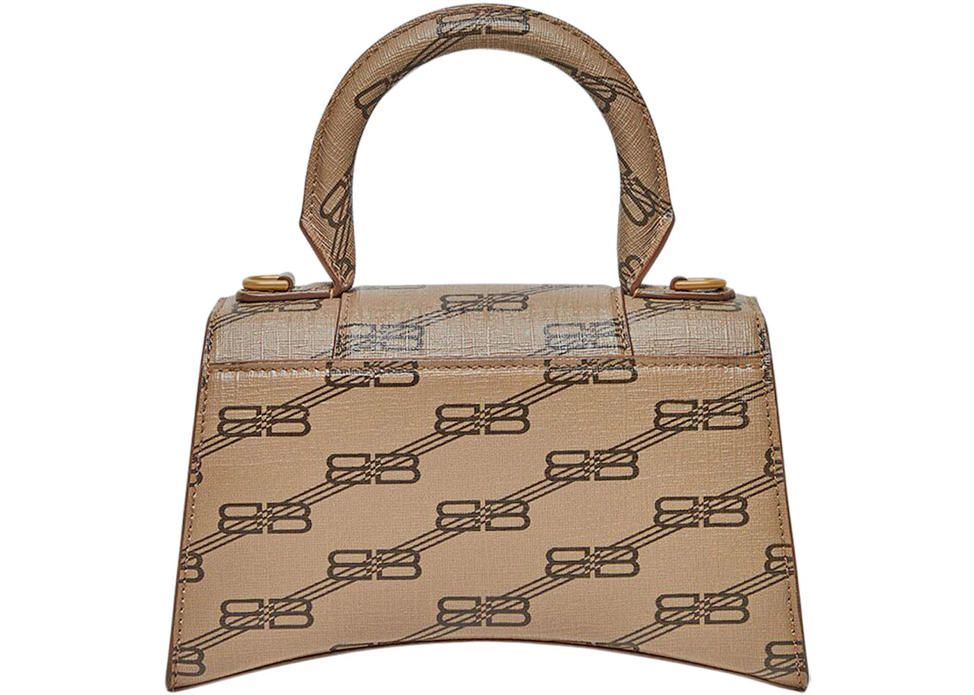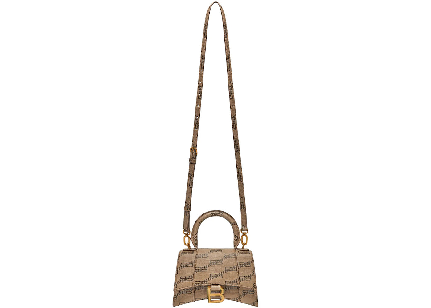 Balenciaga Hourglass Handbag XS BB Monogram Beige/Brown