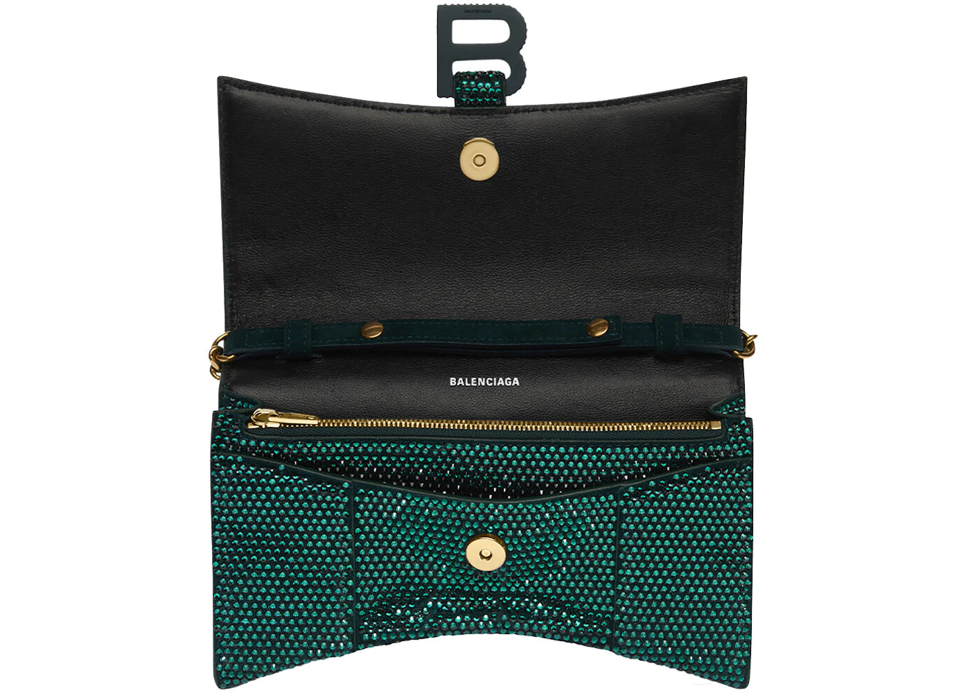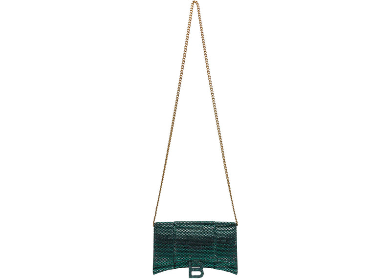 The Balenciaga Hourglass Hangbag With Rhinestones Green is now available at Side Kicks!