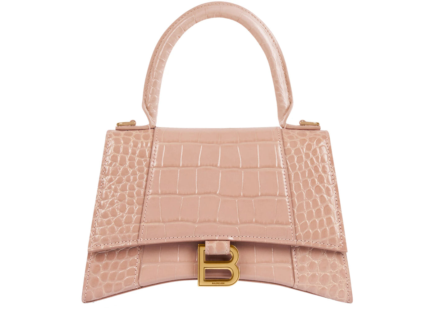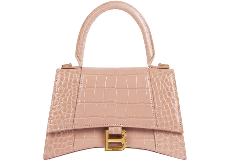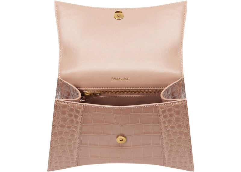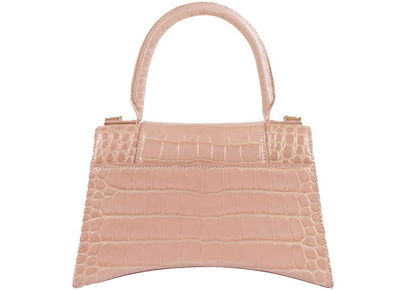 Balenciaga Hourglass Top Handle Bag Small Crocodile Embossed Beige