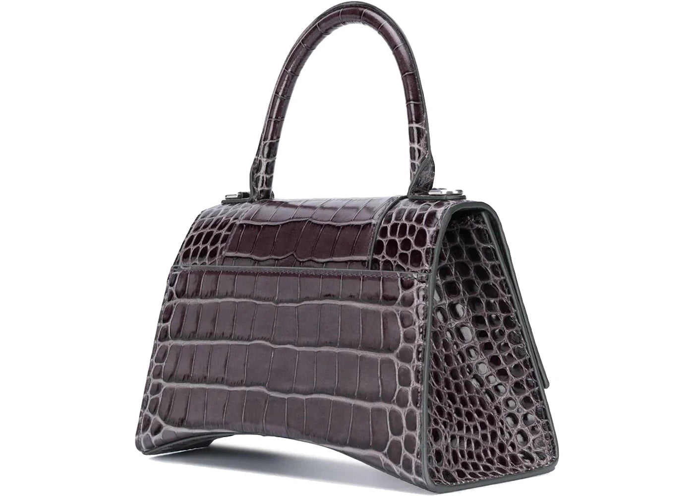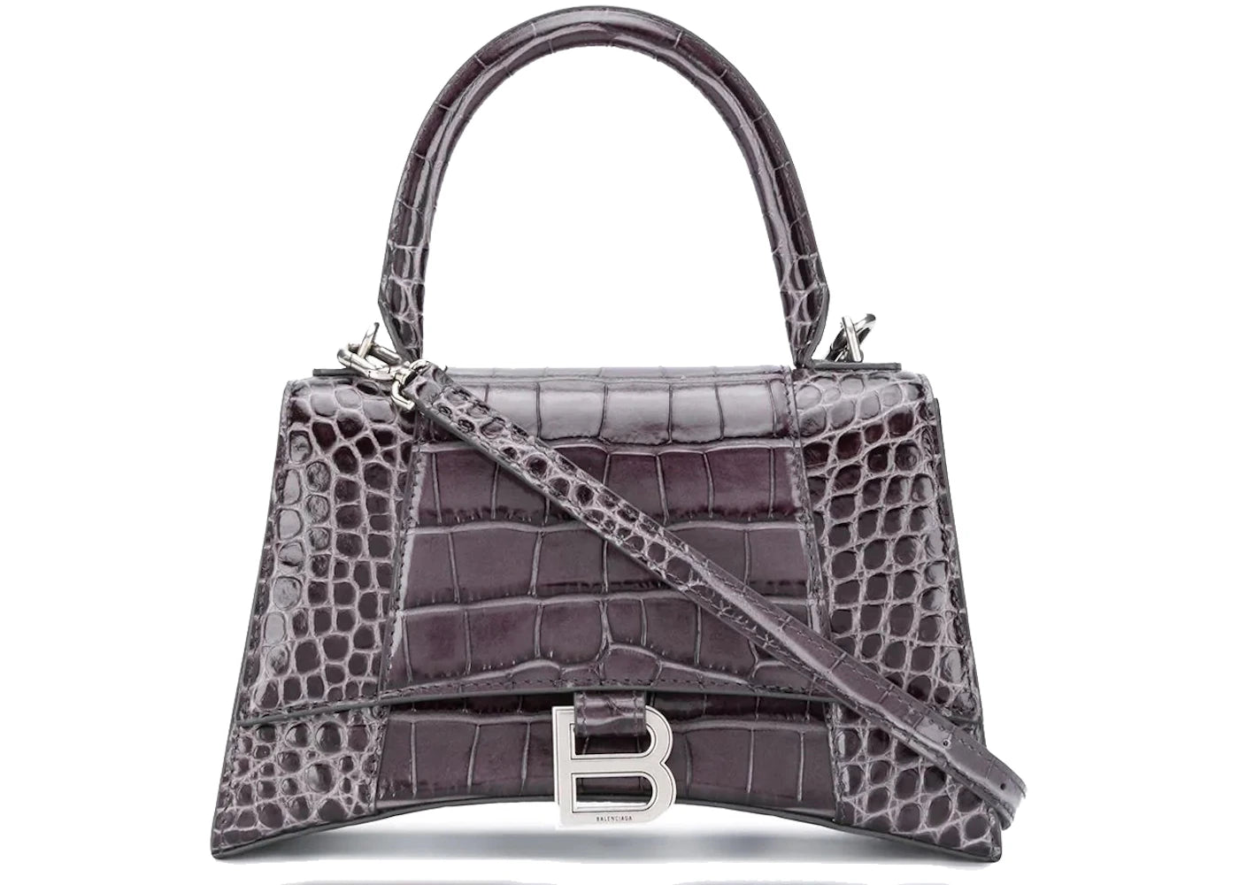 The Balenciaga Hourglass Top Handle Bag Small Crocodile Embossed Grey is now available at Side Kicks!