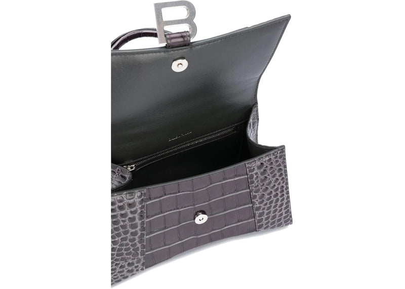 Balenciaga Hourglass Top Handle Bag Small Crocodile Embossed Grey