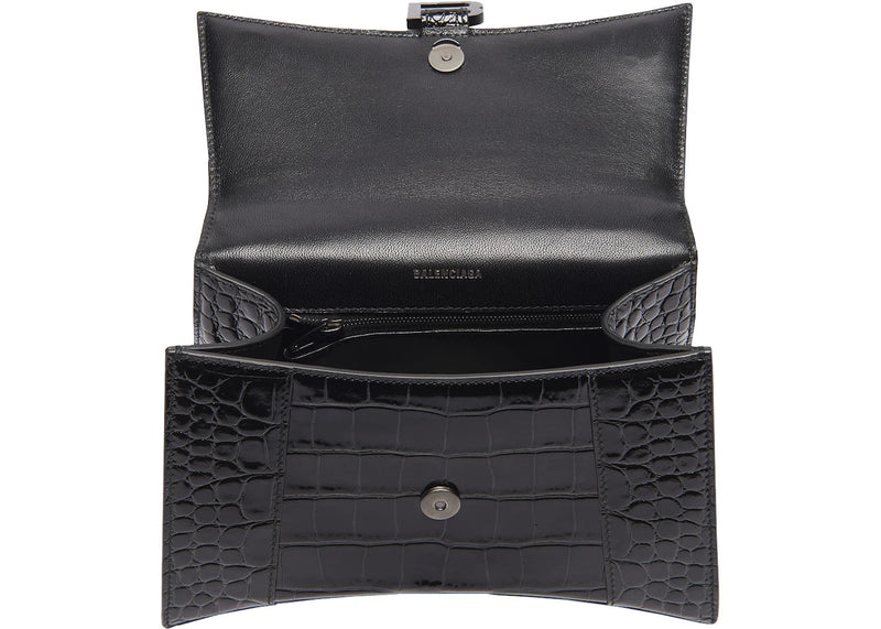 The Balenciaga Hourglass Top Handle Crocodile Embossed XS Black is now available at Side Kicks!
