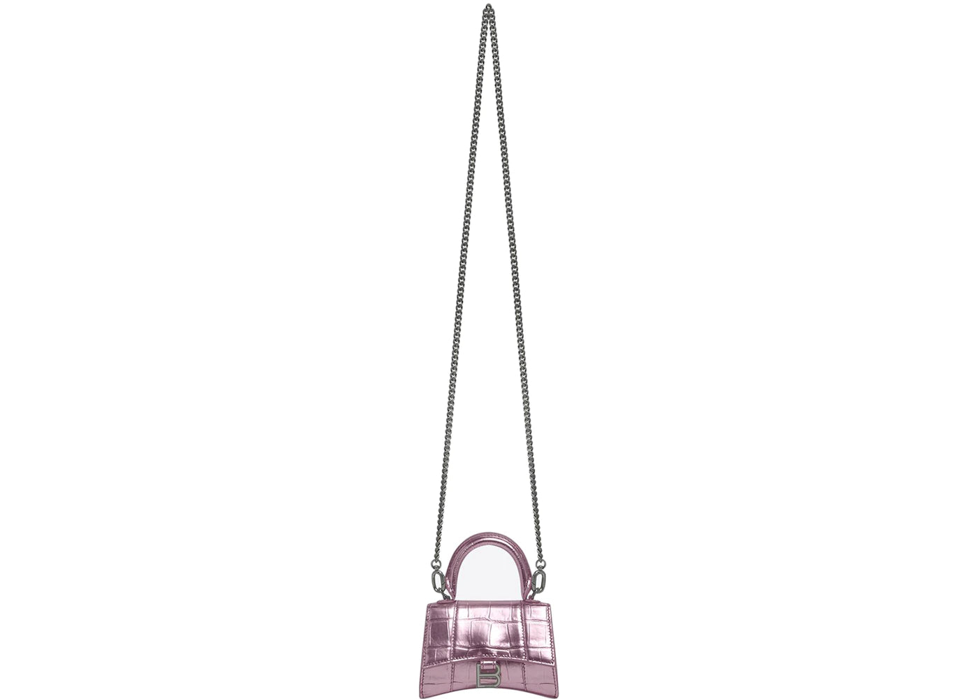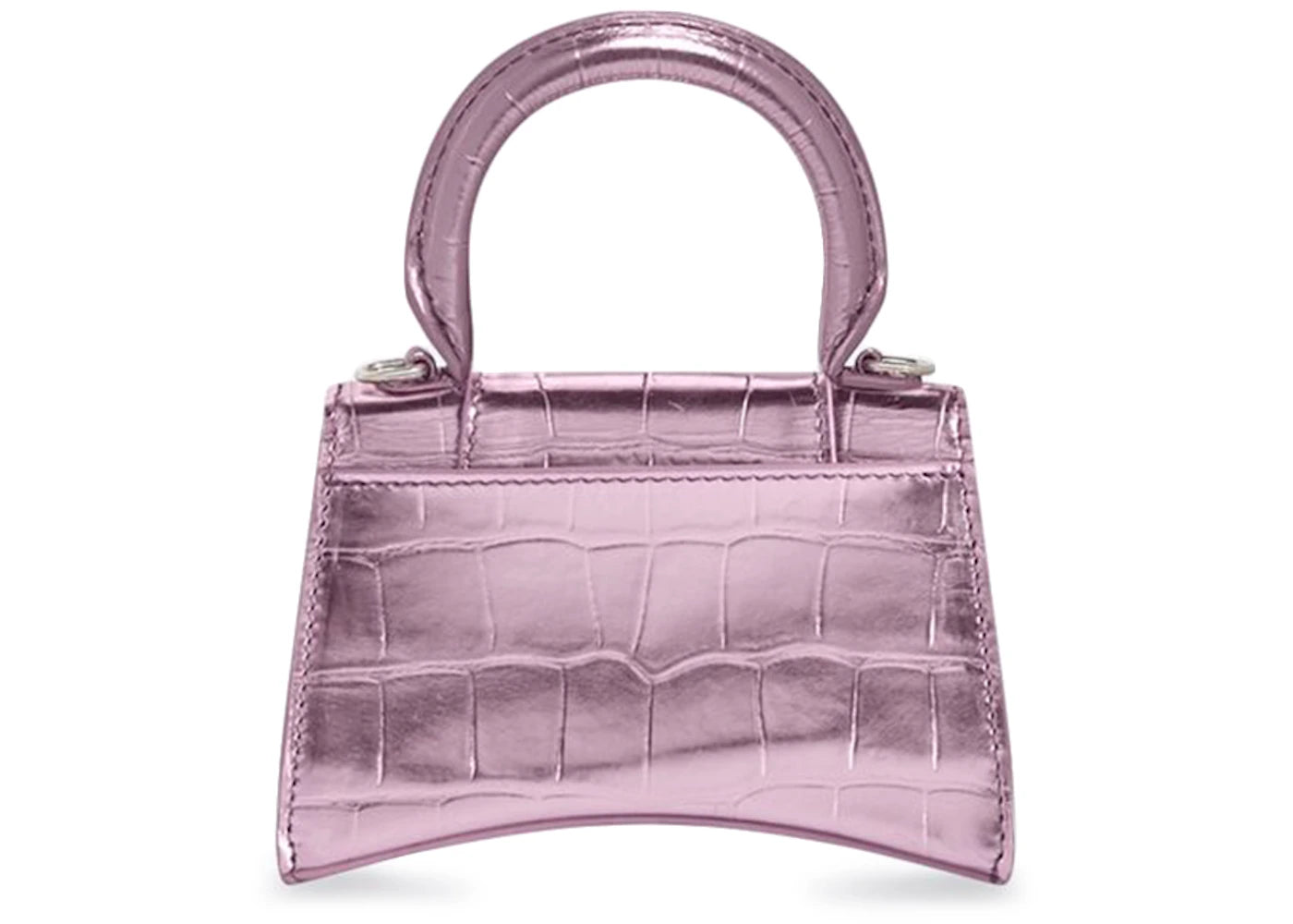 The Balenciaga Hourglass Top Handle Mini Pink Metallized is now available at Side Kicks!