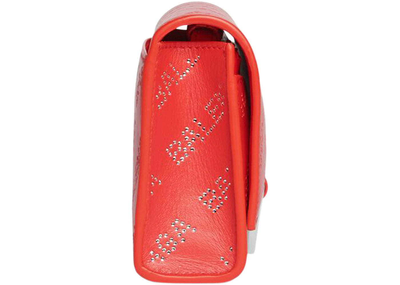 The Balenciaga Hourglass Wallet On Chain And Rhinestones Red is now available at Side Kicks!