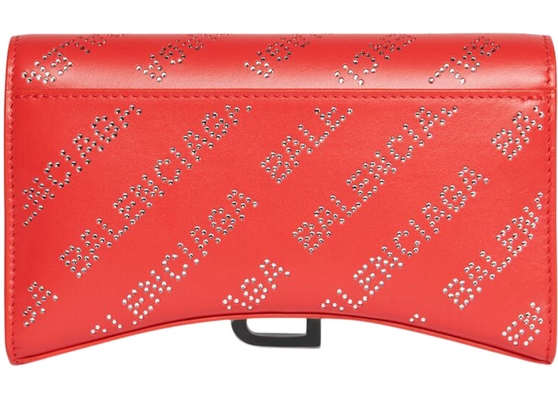 Balenciaga Hourglass Wallet On Chain And Rhinestones Red