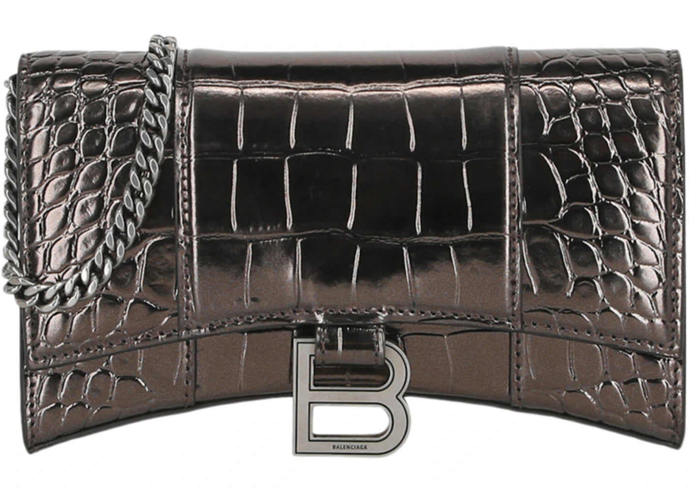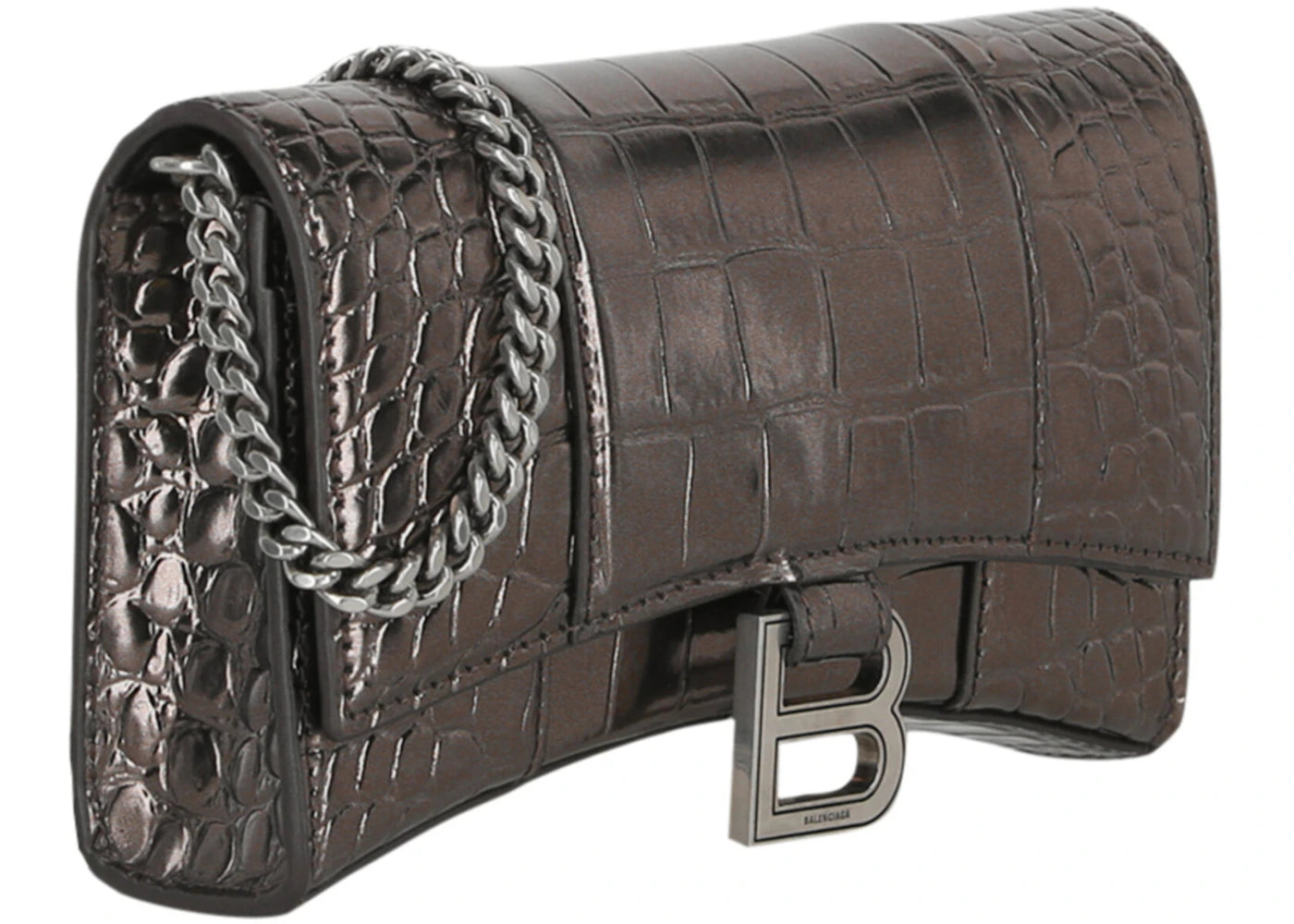 The Balenciaga Hourglass Wallet On Chain Bronze is now available at Side Kicks!