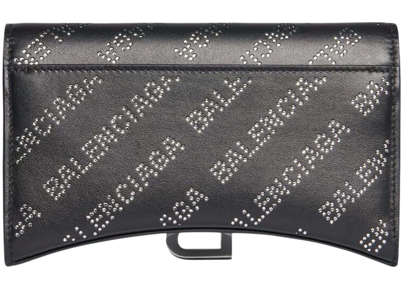 The Balenciaga Hourglass Wallet On Chain With Rhinestones Black is now available at Side Kicks!