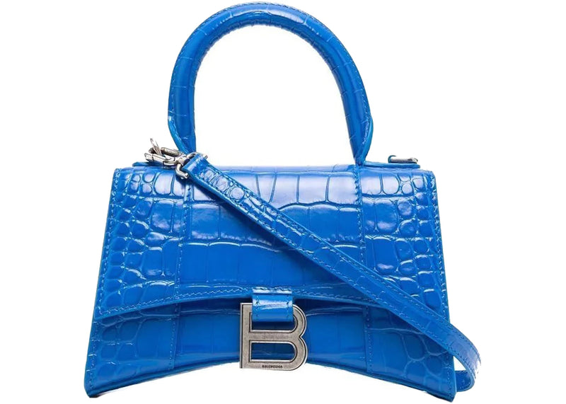 The Balenciaga Hourglass XS Embossed Tote Bag Royal Blue is now available at Side Kicks!